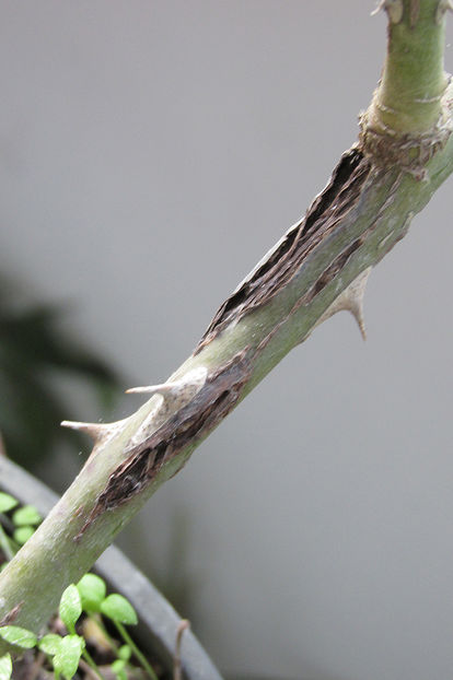 Am cumparat trandafirul in acest an, cu leziunile ce apar in fotografii. Deoarece nu am mai avut experienta cu ciuperca ce provoaca cancerul la trandafiri, va rog mult sa confirmati sau sa infirmati daca este vorba de cancer si, daca da, ce as putea face sa salvez planta, avand in vedere faptul ca o leziune mai mare exista chiar de la altoi.